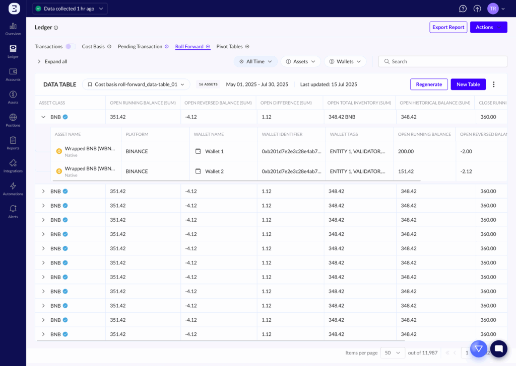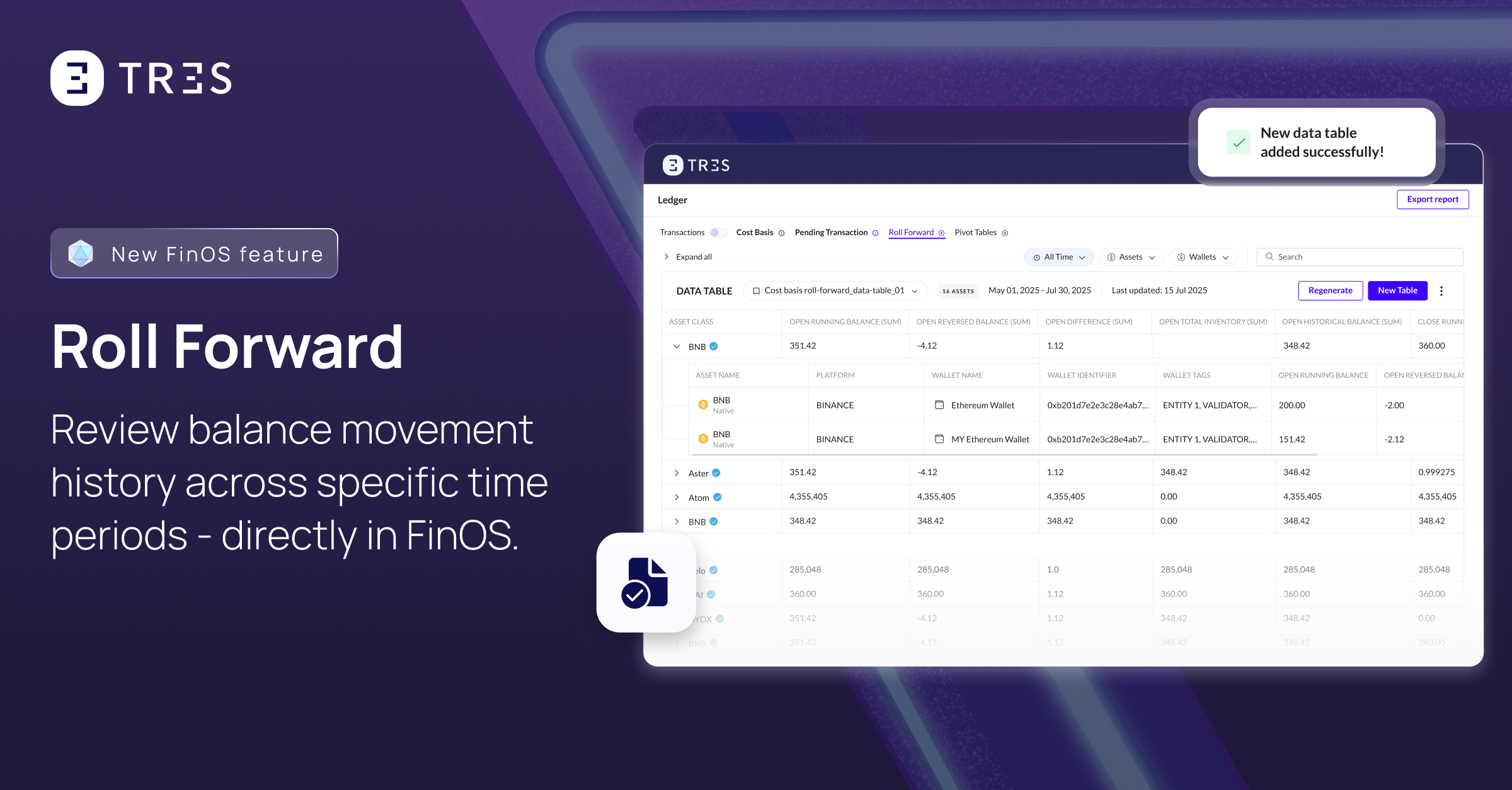 Roll Forward is now available in TRES. Customers can view opening-to-closing movement in real time, with the latest ledger state, and export only when a file is actually needed.